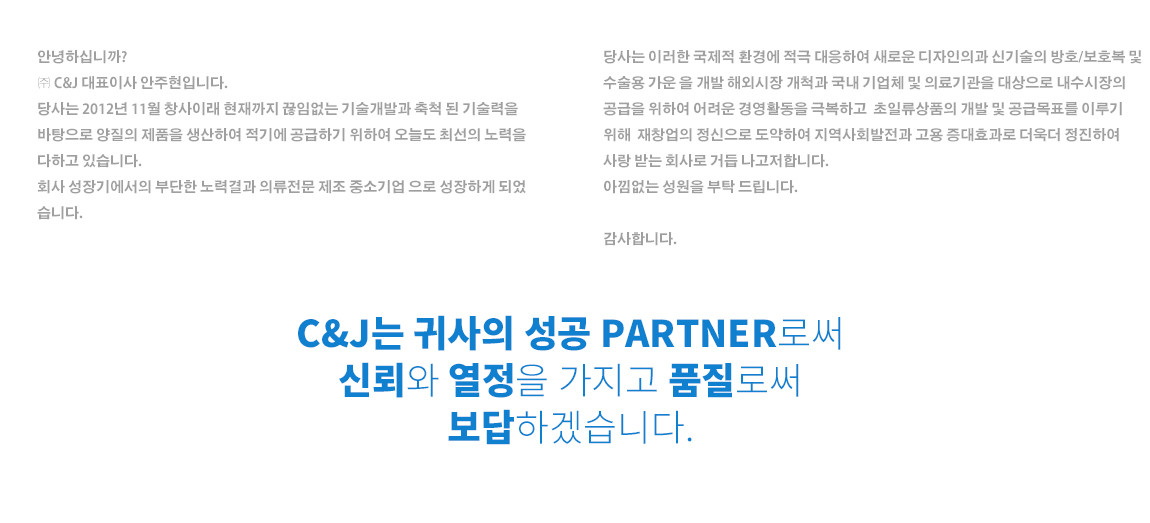 ㈜C&J APPAREL 홈페이지 방문을 환영합니다.